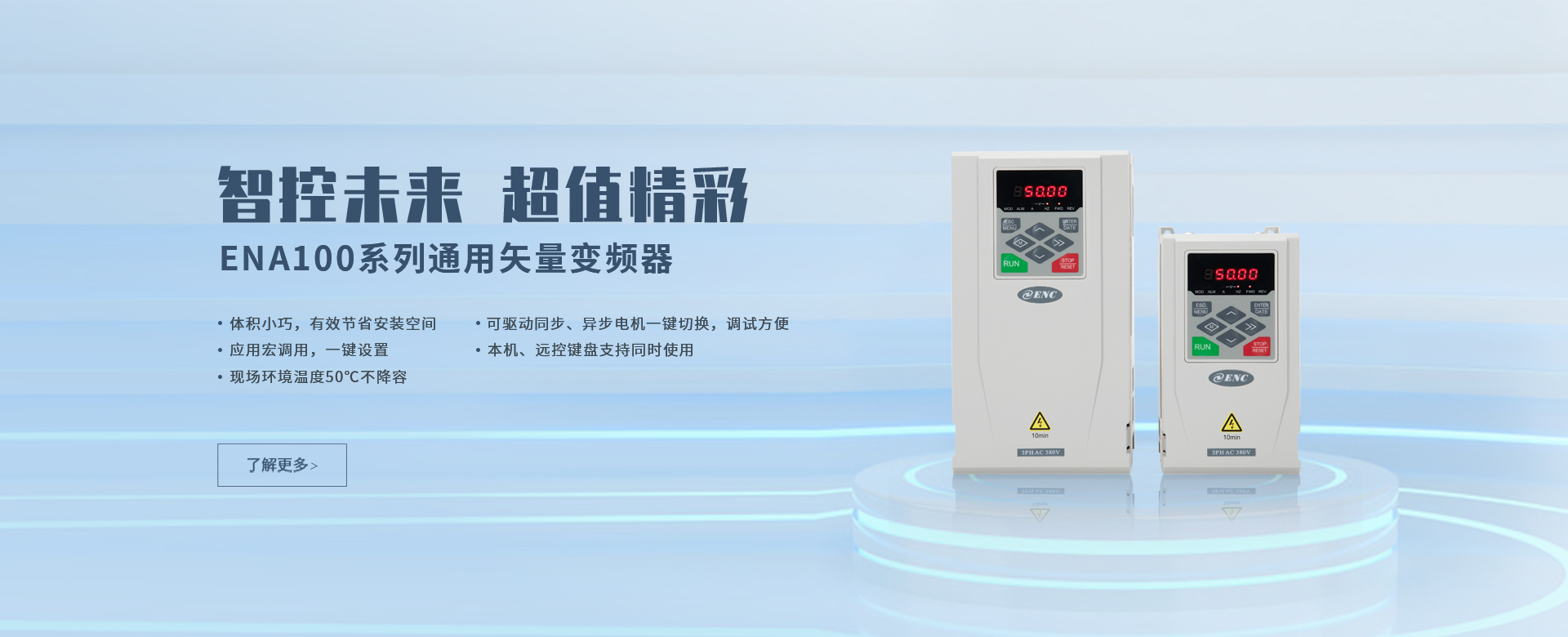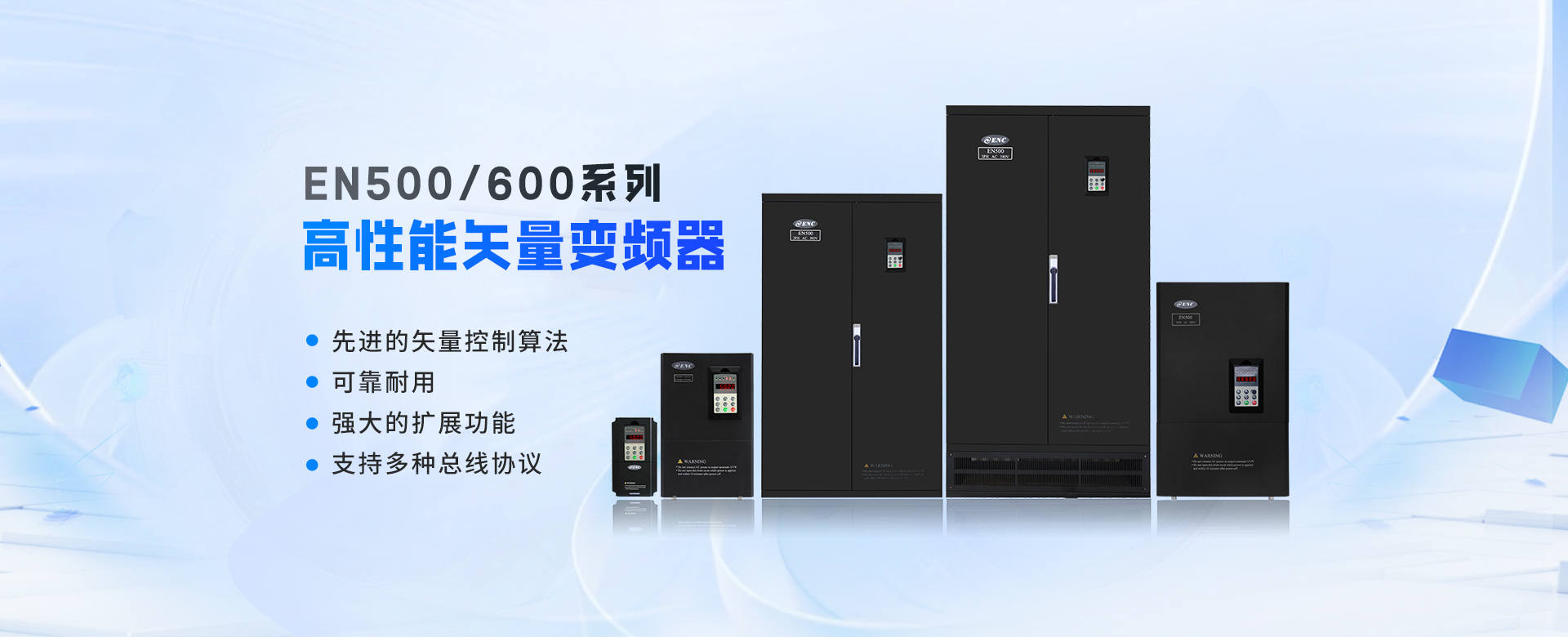 EN500/EN600系列高性能磁通矢量變頻器采用先進的控制方式實現(xiàn)了高轉(zhuǎn)矩、高精度、寬調(diào)速驅(qū)動,可實現(xiàn)有PG矢量控制,無PG矢量控制,具有速度矢量和轉(zhuǎn)矩矢量兩種工作方式,能快速限住沖擊電流,廣泛用于高端制造業(yè)。該系列產(chǎn)品控制精度高、速度響應(yīng)快、低頻特性優(yōu)越,智能檢測與保護完善,豐富的外圍總線擴展、端子擴展、繼電器擴展、模擬量擴展等。