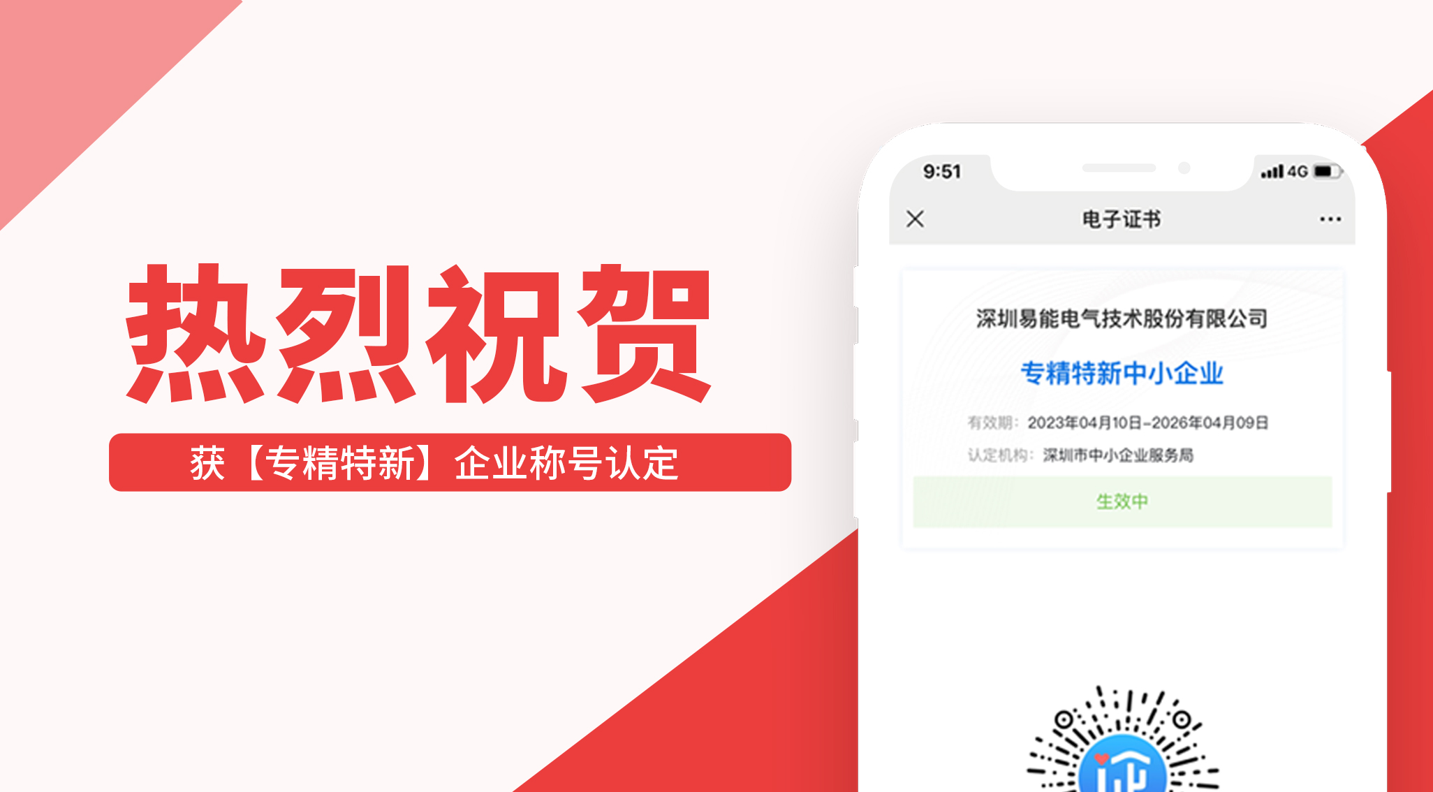 據(jù)深圳市“專精特新”中小企業(yè)名單公示,易能電氣憑借專業(yè)技術(shù)水平,創(chuàng)新能力等綜合實力成功獲評深圳市“專精特新”中小企業(yè)稱號。